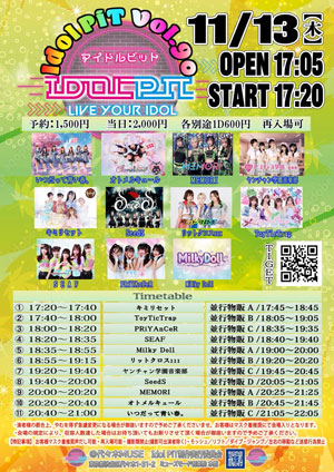 | 11月13日(木) | Idol PiT Vol.90 会場:代々木MUSEホール 時間:【開場】17:05 【開演】17:20 ※急遽変更になる場合がございます。 料金 :※各別途1D¥600- 【予約】1,500円 【当日】2,000円 チケットのご購入はこちら↓ 予約:2025.11.07(金) 22:00 ~2025.11.13(木) 13:00 〆切 ![]() 詳細はTwitterにて (@YGakuenmember) |